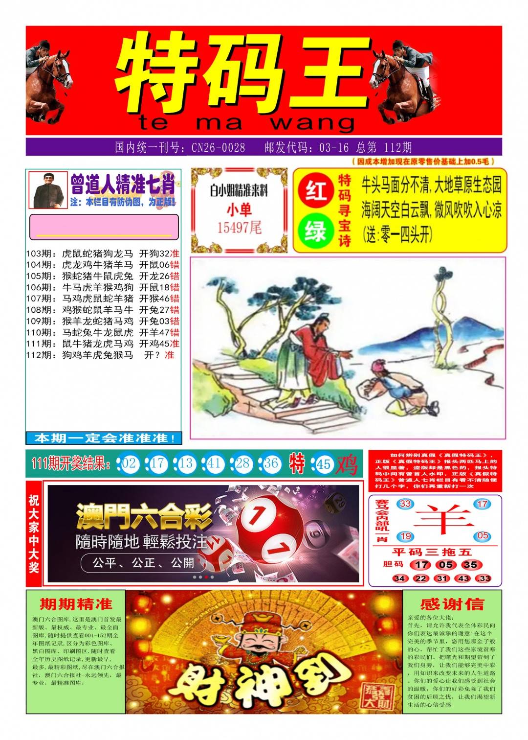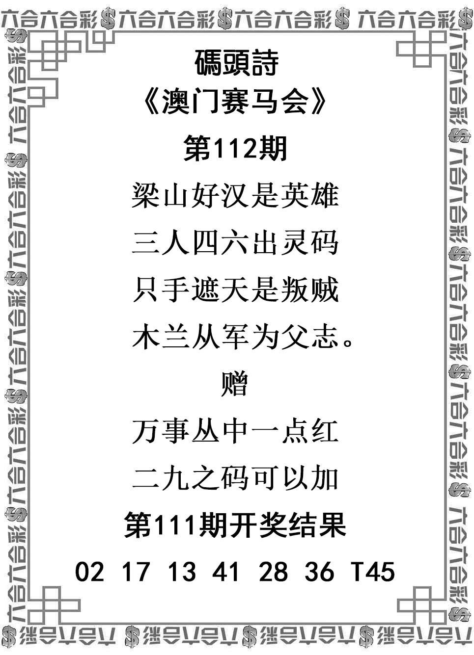 112期:包租公→推荐⑥肖12码→开??准 |